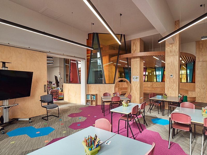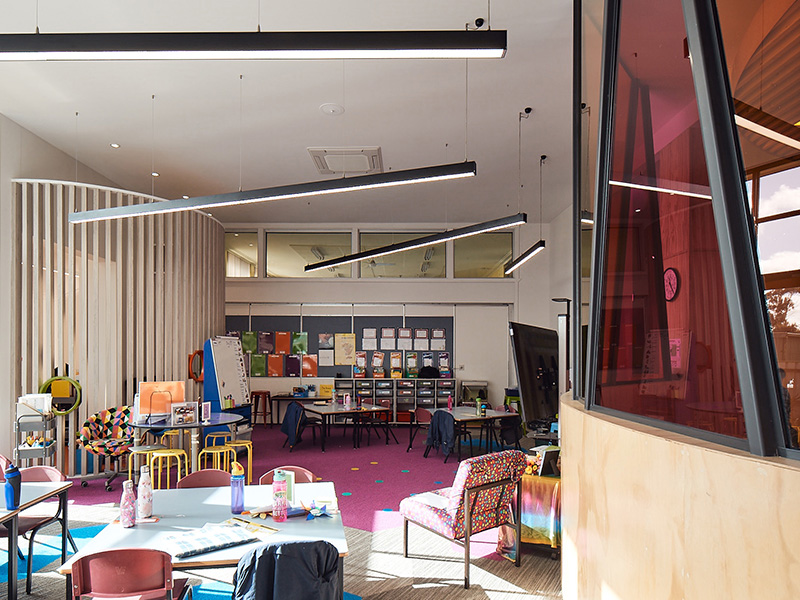 INFINITI MelaGen® luminaires have been specified as the sole luminaire for classrooms, wire suspended elegantly from the building’s ceiling. A high-performance fixture selected with a clean black finish, these commercial grade extruded aluminium luminaires are designed to improve the experience of teachers and students, providing excellent horizontal uniformity on workspaces and superb vertical illumination on faces and resources for full coverage throughout the entire space.