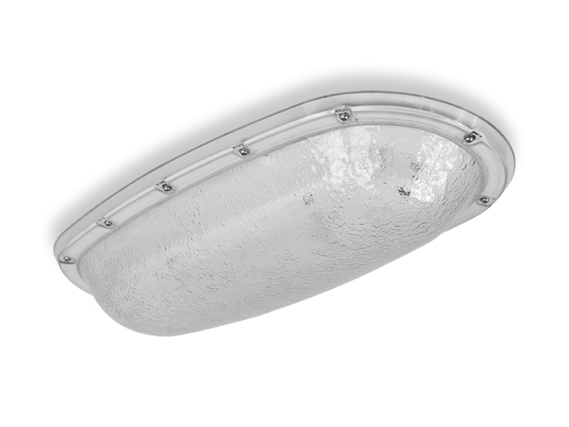Surface-mounted IP65, 50 joule impact resistance (IK10 'plus') construction, prison cell luminaire approved for ceiling & wall fixing, available in two linear lengths and a circular bulkhead with heavy-duty opal or clear frosted lenses. Anti-ligature design, high-risk correctional facility cell luminaire. Multiple choices for lenses, sizes and more